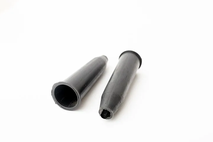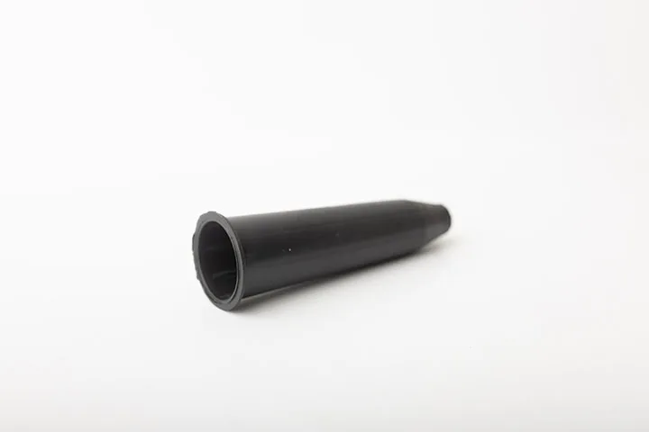 Pieza plástica de forma cónica con boca estrecha y base circular reforzada. Diseñada para servir como conector, guía o salida en sistemas que requieren direccionamiento de flujo o acople preciso. Su estructura permite una fijación firme y un paso controlado de líquidos, gases o cables, dependiendo del uso técnico requerido.