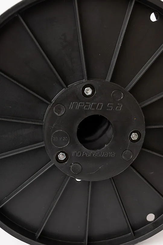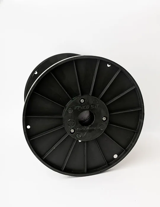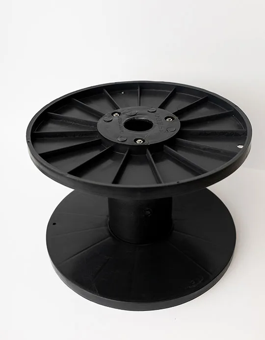 Carretel fabricado en plástico técnico de alta resistencia, diseñado para el enrollado, almacenamiento y transporte de cables, alambres, hilos u otros materiales lineales. Su estructura robusta y simétrica garantiza estabilidad, durabilidad y reutilización eficiente en entornos industriales.