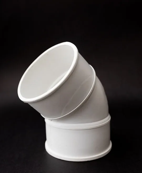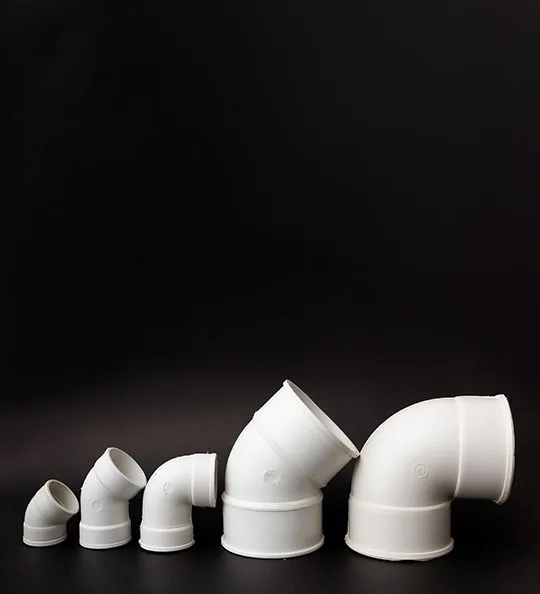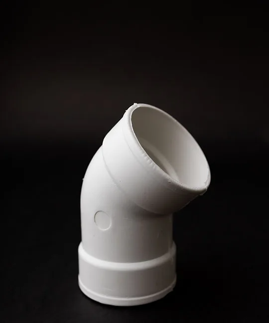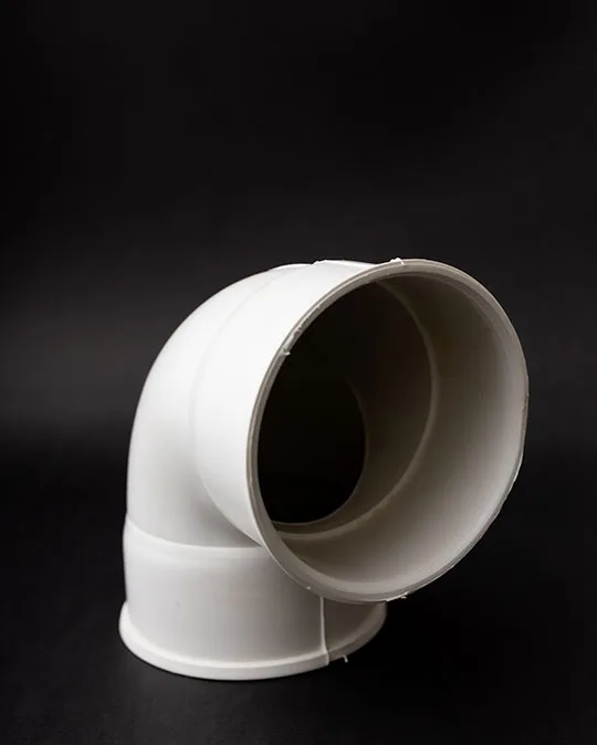 Pieza plástica en forma de codo con ángulo, diseñada para desviar el flujo de líquidos o gases en sistemas de tuberías. Disponible en múltiples tamaños, permite conexiones eficientes y seguras en instalaciones técnicas e industriales.