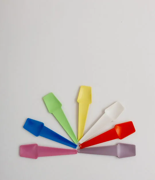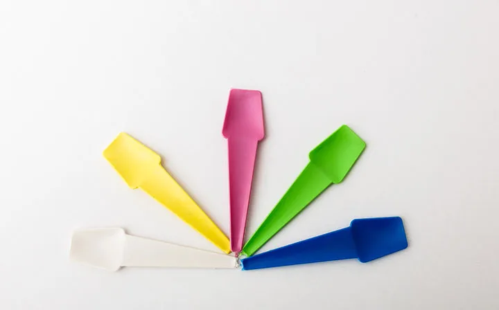 Cucharita plástica de formato plano y cuerpo ancho, ideal para consumir helado, postres, yogur y otros productos fríos o semisólidos. De diseño ergonómico y colores llamativos.